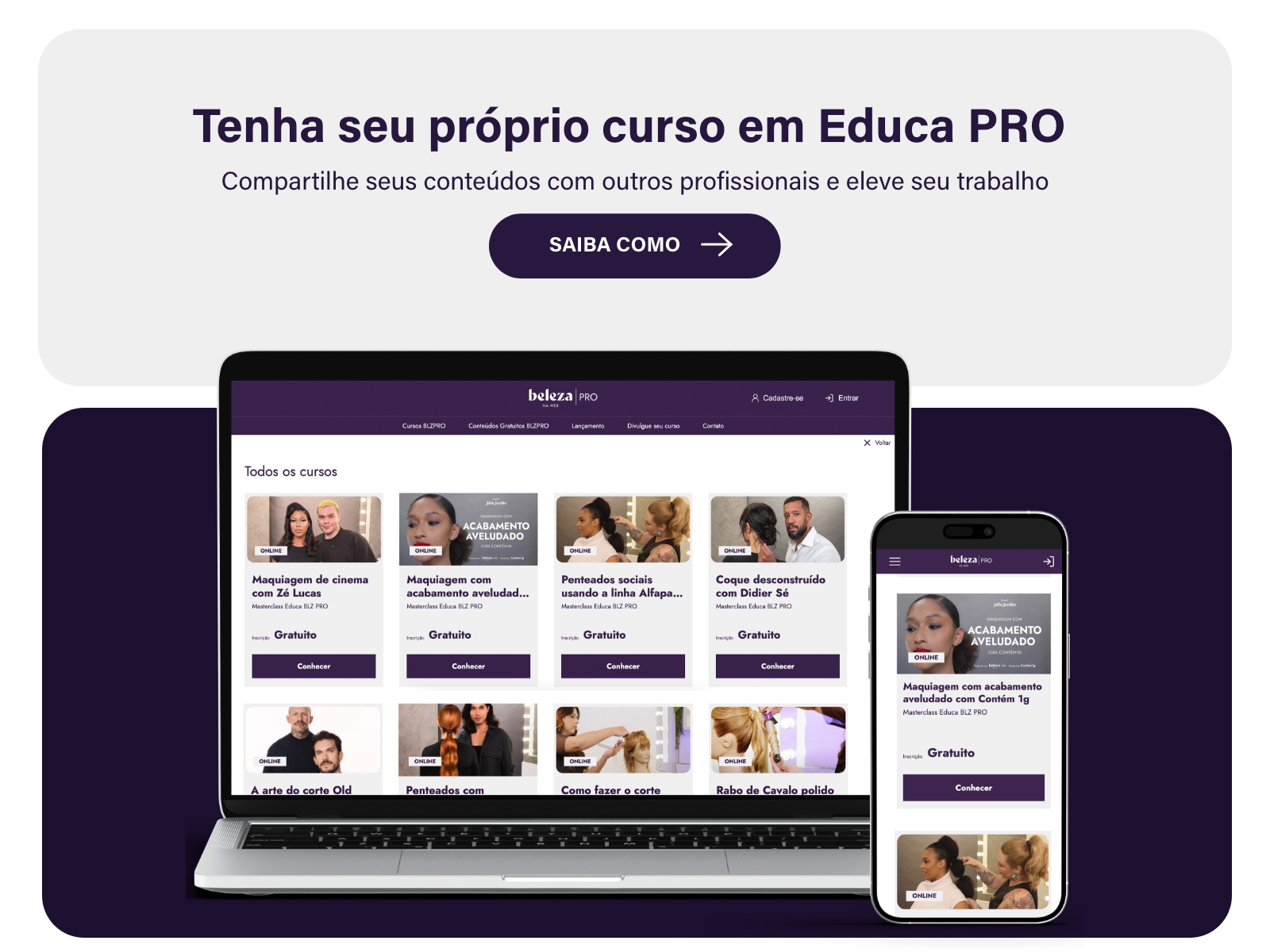 A Educa BLZ PRO é a plataforma de desenvolvimento profissional para todos os profissionais da beleza. Aqui, manicure, esteticistas, maquiadores, e profissionais de beleza de todas as áreas encontrarão cursos, workshops e conteúdos exclusivos para impulsionar suas carreiras. Educa BLZ PRO faz parte do ecossistema BLZ PRO.